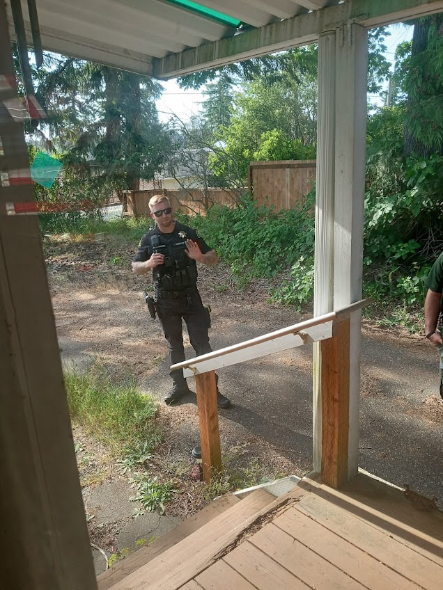 6/8/23 about 5:50PM Antifa Scum 1 Thurston County Sheriff and 2 'community outreach' similar to yesterday's Crisis & ITA Team claiming "I can't hear you" (ANTIFA CHANT) every time I said something and they wanted me to step outside. They don't have a search warrant. I said NO SOLICIT NO TRESPASS and reported to donotcall.gov / I called 911 to have them remove ANTIFA imposter sheriffs. Dispatch claims they aren't Antifacist but told her she is lying. Do not call. Do not Solicit. Do not Trespass. A deputy may call back later. Repeat time after 5:30PM 6/7/23 imposter sheriff who claim got a crisis call and looking for bodies. Wanted me on pills or locked up! I'm not eligible for their services and don't need them but they insist on breaking laws. Left card saying Olympic Health & Recovery Services / Crisis & ITA Team / Crisis Line: 360-754-1338 OR 800-270-0041 / 612 Woodland Square Loop SE Suite 401 Lacey, WA 98503 / Customer Service: 360-763-5828 with access to all state law, school & bank accounts. I reported to identitytheft.gov May also be associated with 6/8/23 12:15PM trespasser soliciting Vantage Community Management 360.455.4464 they said Dianne Bradford Compliance Officer is Carlyon Beach HOA 2719 Island Drive NW, Olympia, WA 98502 360-866-0717 as I reported her number 360-751-4160 donotcall.gov (NO when she asked for Richard's contact details and took our plates.) which seems to be in retaliation with THEFT with trespass and screaming I reported via 911 call about 10AM 6/6/2023 at the neighbor 9818 Steamboat Island RD NW OWNER NOT HOME. Antifacist Thurston County Sheriff and Thurston 911 Communications (TCOMM 911) refused service plus lied to me again about going to the property, everything is ok, that I was in crisis, etc.
